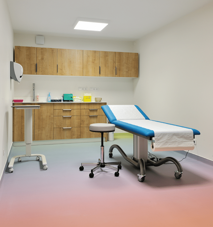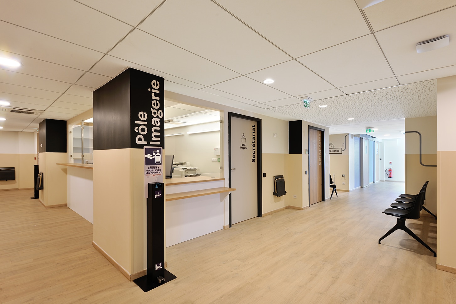 Les aménagements ont été conçus pour répondre aux usages quotidiens d’un environnement médical : rangement fonctionnel, circulations fluides et espaces lisibles. Le choix des matériaux et des finitions apporte une atmosphère sobre et chaleureuse, tout en respectant les contraintes techniques du lieu.